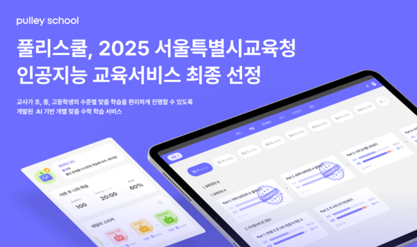 이미지 : 풀리스쿨, 2025년 서울특별시교육청 인공지능 교육서비스 최종 선정에듀테크 스타트업 프리윌린(대표 권기성)은 AI 기반 맞춤형 수학 학습 서비스 ‘풀리스쿨’이 '2025년 서울특별시교육청 인공지능(AI) 교육서비스'에 최종 선정되어, 2026년 2월까지 서울시 초·중·고 교육