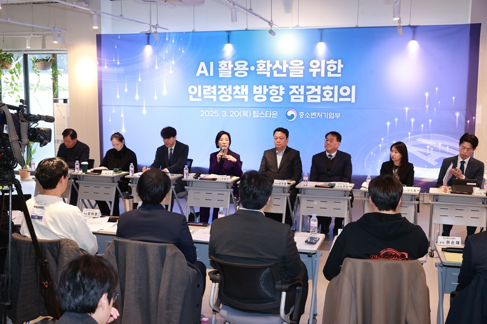 중소벤처기업부(이하 중기부)가 20일 서울 팁스타운 S1에서 오영주 장관과 국내 인공지능(이하 AI) 스타트업, 제조 AI기업, 전문가 등 20여명이 참석한 가운데, AI 활용·확산을 위한 인력정책 방향 점검회의를 개최하였다고 밝혔다.전 세계적으로 AI 핵심인재 확보가 곧 기술 경쟁력이라는 인식이 확산되며 글로벌 기술 기업들의 AI 인재 확보