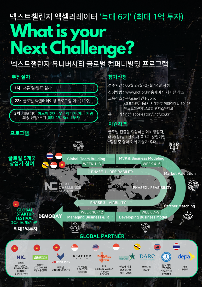 넥스트챌린지 액셀러레이터 '늑대 6기' NCU 글로벌 컴퍼니빌딩 프로그램 모집